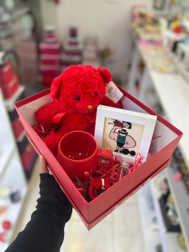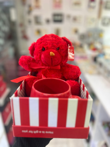 باکس اقتصادی ولنتاین خرس قرمز و لیوان سرامیکی دسته دار ساده