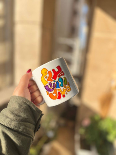ماگ چینی دسته دار ست طرح گنگستر شهر آمل صنایع دستی لیوان دهنی