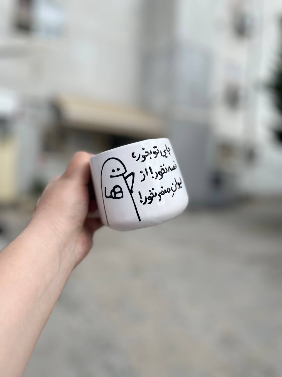 ماگ چینی دسته دار ست طرح گنگستر شهر آمل صنایع دستی لیوان دهنی